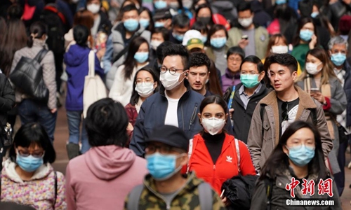 Most people in Hong Kong wear facial masks to go to Causeway Bay for shopping on Saturday. Photo: CNS Photo