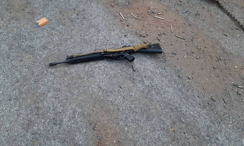 A rifle used by the alleged killer is seen in Nakhon Ratchasima province, Thailand, Feb. 8, 2020. (Xinhua)