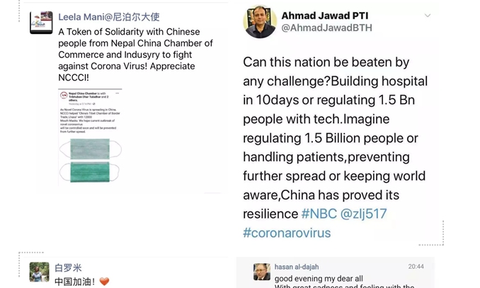 They all cheered up Wuhan, the epicenter of the outbreak, and China,and expressed their confidence that the Chinese people will be able to overcome this difficult time and win the battle against the epidemic.