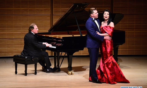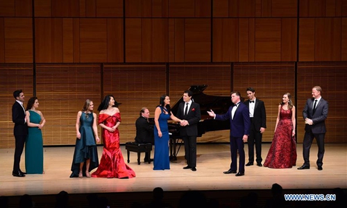 Soprano Chen Quan (1st R) performs at the sixth annual Spectacular concert in Zankel Hall at Carnegie Hall in New York, the United States, on Feb. 7, 2020. More than 500 New Yorkers enjoyed a brilliant concert celebrating the Year of the Rat at Carnegie Hall in New York City (NYC) on Friday night. (Photo by Zhan Zehu/Xinhua)