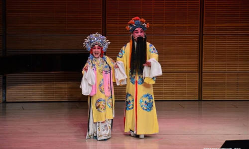 Artists Shi Jiehua (L) and Cheng Min perform Kunqu, one of the oldest forms of Chinese opera, at the sixth annual Spectacular concert in Zankel Hall at Carnegie Hall in New York, the United States, on Feb. 7, 2020. More than 500 New Yorkers enjoyed a brilliant concert celebrating the Year of the Rat at Carnegie Hall in New York City (NYC) on Friday night. (Photo by Zhan Zehu/Xinhua)