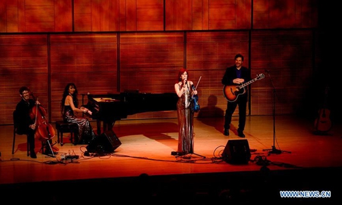 Violinist Deni Bonet (2nd R) and her band perform at the sixth annual Spectacular concert in Zankel Hall at Carnegie Hall in New York, the United States, on Feb. 7, 2020. More than 500 New Yorkers enjoyed a brilliant concert celebrating the Year of the Rat at Carnegie Hall in New York City (NYC) on Friday night. (Photo by Zhan Zehu/Xinhua)