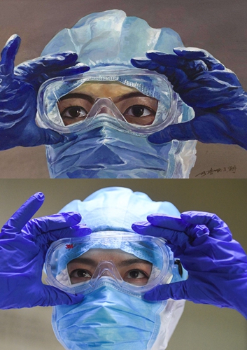 Huang Xia wears protective goggles before going into the intensive care unit in Three Gorges Central Hospital in southwest China's Chongqing Municipality, Feb. 2, 2020. Huang Xia, 37, is the attending physician of intensive medicine in the hospital. (Xinhua/Wang Quanchao, Xu Shipei)
