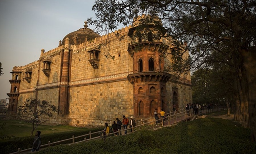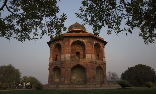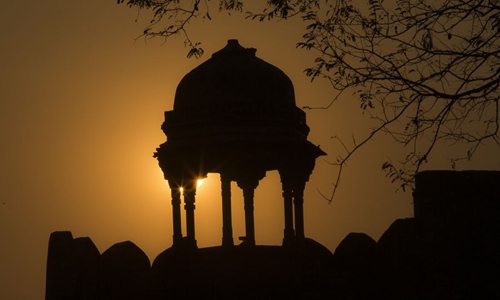 Photo taken on Feb. 9, 2020 shows the sunset scenery at Purana Qila, one of the oldest forts in Indian capital city New Delhi. (Xinhua/Javed Dar)