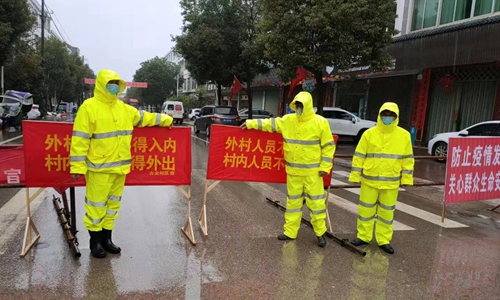 Shangrao in East China's Jiangxi Province sent out nearly 12,000 grid members in the streets and lanes, carrying out education for epidemic prevention, keeping track of residents and preventing gatherings of large crowds. Photo: Courtesy of local official