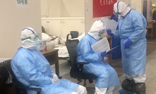 At the hospital, there are some posters saying, "confidence is more important than gold," and doctors as well as nurses in protective suits have been busy day and night, according to some video clips and photos Li shared with the Global Times.