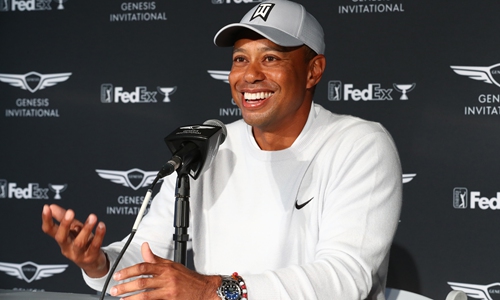 Tiger Woods speaks at a press conference on Tuesday in Pacific Palisades, California. Photo: AFP