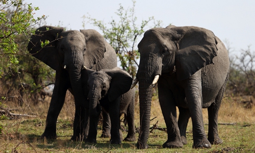 File photo shows an elephant family walking in the Serengeti National Park, north Tanzania, on Aug. 17, 2013. (Xinhua/Zhang Ping)