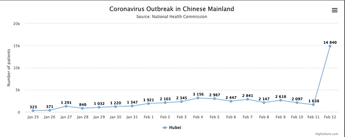 Experts believed the sharp increase in deaths potentially has resulted from the adjustment of diagnostic criteria and the previous accumulation of cases, especially those in critical condition, but they said that further explanations from the Hubei provincial government are needed.