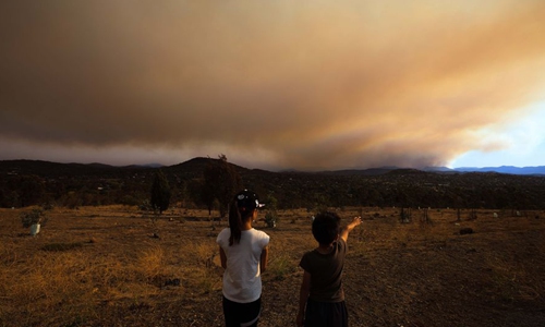 Photo taken on Feb. 3, 2020 shows smoke from the bushfire burning in the south of the Australian Capital Territory (ACT) moves to blanket the Australian capital Canberra. (Photo by Chu Chen/Xinhua)