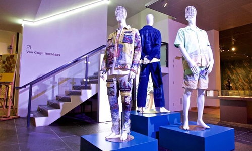 Creations of the new Daily Paper x Van Gogh collection are seen at the Van Gogh Museum in Amsterdam, the Netherlands, on Feb. 14, 2020. The Van Gogh Museum's collaboration with Daily Paper saw some of Van Gogh's most iconic masterpieces, sketches and quotes brought to life as wearable art pieces. The new collection will be available from Feb. 15. Photo:Xinhua