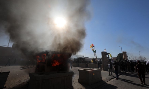 Protesters gather in front of the US embassy in Baghdad, Iraq on Dec. 31, 2019. Photo:Xinhua