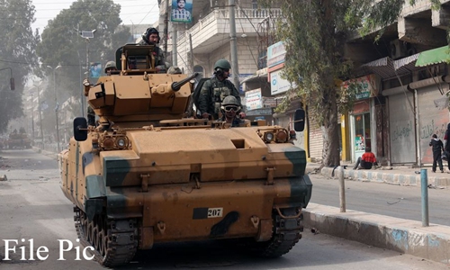A Turkish military armoured vehicle advances on a street in Afrin, Syria, on March 24, 2018. (Xinhua File photo)