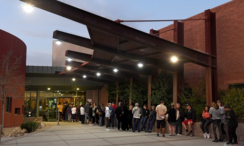People wait in line to vote on the first day of early voting for the upcoming Nevada Democratic presidential caucus at the Centennial Hills Community Center YMCA on Saturday in Las Vegas, the US. Photo: AFP