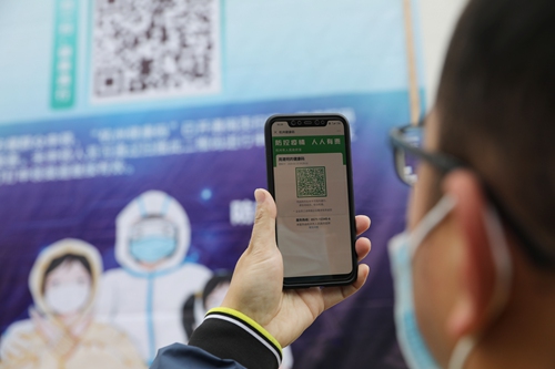 A villager scans the QR code to register his health condition in Tianmushan town, Hangzhou of East China's Zhejiang Province on Saturday. Photo: cnsphotos