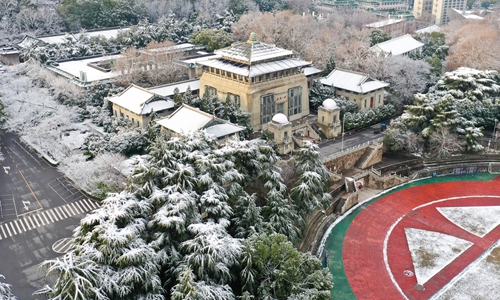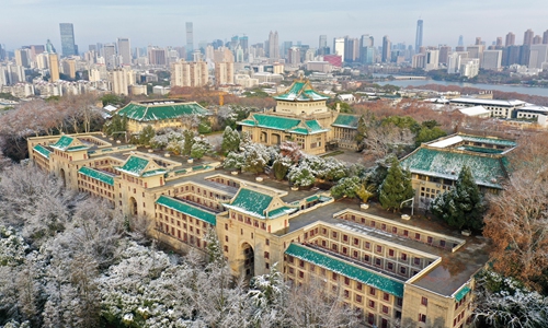 Aerial photo taken on Feb. 16, 2020 shows the administrative building at Wuhan University in Wuhan, central China's Hubei Province. (Xinhua/Chen Yehua)
