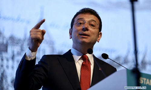 Ekrem Imamoglu, mayor of Istanbul, speaks at the inauguration ceremony of an agency in Istanbul, Turkey, Feb. 17, 2020. An investment agency was launched on Monday to make Istanbul, Turkey's economic hub that accounts for one-third of the whole gross domestic product, an attraction spot for foreign investors. (Xinhua)