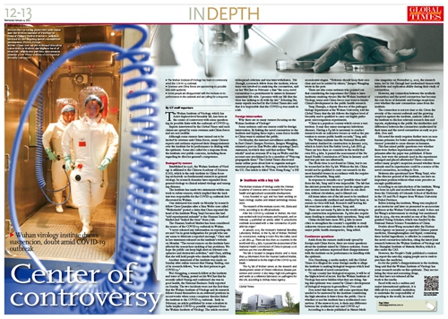Dou Hanzhang, a media analyst, told the Global Times it is illogical for some foreign media to allege the institute is making biological weapons which lead to the outbreak of novel coronavirus.