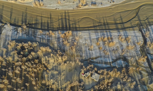 A residence by the Keriya river in northwest China's Xinjiang Uygur Autonomous Region, Nov. 16, 2019. Photo: Xinhua
