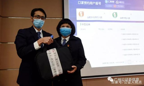 Guangzhou holds its first facemask lottery on Tuesday afternoon. Photo: Guangzhou Notary Public Office