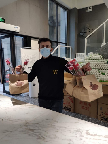 One of the workers at the cafe named Wakanda caught attention with his foreign look. The 29-year-old Iranian, Sina Karami, came nearly two years ago to China and has been living in Wuhan. He is the only foreigner of the seven baristas who chose to deliver a helping hand during the difficult time.