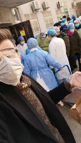 Sina Karami delivers packed coffee to medical workers. (Picture provided by Sina Karami)