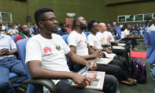 Students awarded by Huawei's Seeds for the Future Programs attend a launch ceremony in Lusaka, Zambia, on Oct. 4, 2019. (Xinhua/Peng Lijun)