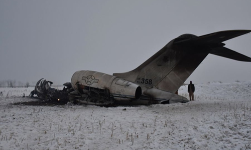 Photo taken on Jan. 27, 2020 shows the wreckage of the crashed plane in Deh Yak district of Ghazni province, Afghanistan. The Afghan Taliban claimed Monday that its fighters shot down a U.S. forces' aircraft in eastern Ghazni province. The U.S. military said on Monday that it is monitoring the situation following reports of a U.S. aircraft crash in Afghanistan. (Photo by Saifullah/Xinhua)