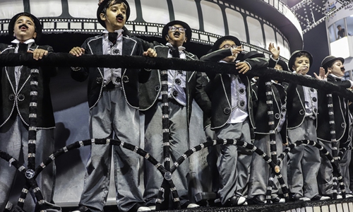 The Dragoes da Real school explored the concept of happiness in its many forms, paying homage to everything from the music of Beethoven to the performances of actor Charlie Chaplin.