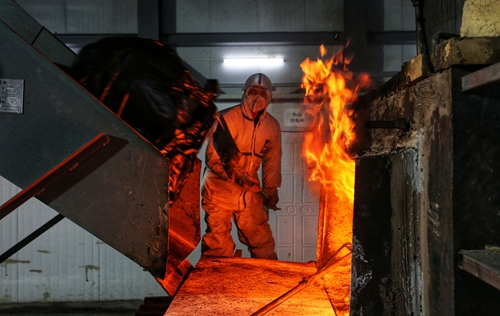 A worker burns infectious medical waste at Leishenshan Hospital of Wuhan on Sunday. Photo: Cui Meng/GT