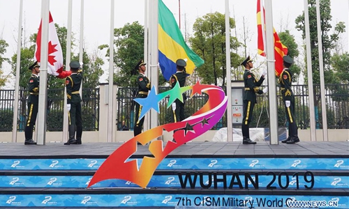 Photo taken on Oct. 16, 2019 shows a view of the flag-raising ceremony at the athletes' village of the 7th International Military Sports Council (CISM) Military World Games in Wuhan, capital of central China's Hubei Province. Photo: Xinhua