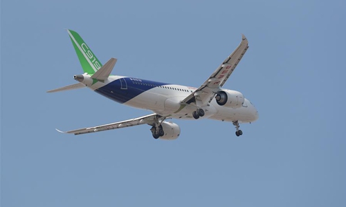 C919 aircraft left the Shanghai Pudong airport at 11:08 a.m. and arrived in Dongying at 1:07 p.m., said sources with the Commercial Aircraft Corporation of China (COMAC), the manufacturer.