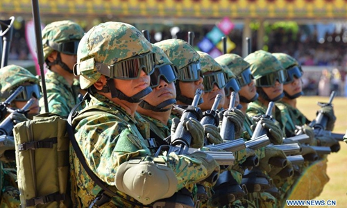 Personnel of the Royal Brunei Armed Forces take part in Brunei's 36th National Day Parade ceremony in Bandar Seri Begawan, capital of Brunei, Feb. 23, 2020. Over 26,000 participants put on a near-flawless performance for Brunei's 36th National Day Parade ceremony in the capital on Sunday. (Photo by Jeffrey Wong/Xinhua)