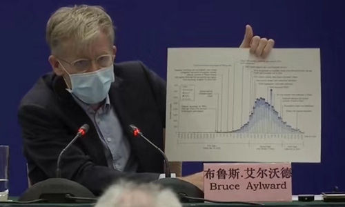 The World Health Organization (WHO)-China Joint Mission on COVID-19 gives a technical briefing in Beijing on Monday. Photo: Chen Qingqing/GT