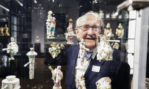 A visitor views exhibits during the press preview of the Galleries for British Decorative Arts and Design in the Metropolitan Museum of Art in New York, the United States, Feb. 24, 2020. The Galleries for British Decorative Arts and Design in New York's Metropolitan Museum of Art (The Met) will reopen to the public on March 2, according to a press preview on Monday. (Xinhua/Wang Ying)