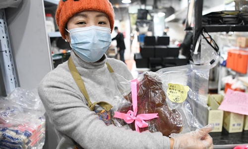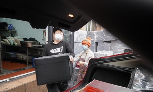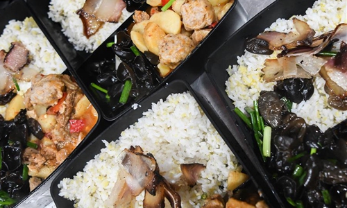 Photo taken on Feb. 26, 2020 shows the food prepared by Ms Liu, a volunteer, for medical workers in Wuhan, central China's Hubei Province. Liu, a 24-year-old volunteer from Sichuan Province, drove dozens of hours to Wuhan on Feb. 3 with chefs and food materials to cook and deliver food for the medical workers fighting against the novel coronavirus disease (COVID-19) in the epidemic-hit city for free. Every day, about 400 to 600 sets of food can be delivered to hospitals by the team she is leading. Except providing food, she also collects and delivers other donated materials for hospitals. She won herself an affectionate nickname "Raincoat Sister" from the medical workers as she had to wear raincoat due to the lack of protective suits. She said she is determined to hold on till the end of the epidemic. (Xinhua/Cheng Min)