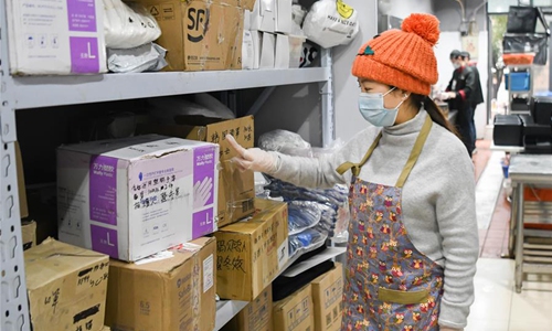 Photo taken on Feb. 26, 2020 shows Ms Liu, a volunteer, who prepares food for medical workers in Wuhan, central China's Hubei Province. Liu, a 24-year-old volunteer from Sichuan Province, drove dozens of hours to Wuhan on Feb. 3 with chefs and food materials to cook and deliver food for the medical workers fighting against the novel coronavirus disease (COVID-19) in the epidemic-hit city for free. Every day, about 400 to 600 sets of food can be delivered to hospitals by the team she is leading. Except providing food, she also collects and delivers other donated materials for hospitals. She won herself an affectionate nickname "Raincoat Sister" from the medical workers as she had to wear raincoat due to the lack of protective suits. She said she is determined to hold on till the end of the epidemic. (Xinhua/Cheng Min)