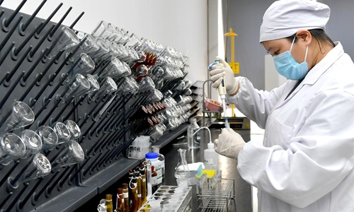 A worker works in a dairy enterprise in Xi'an, northwest China's Shaanxi Province, Feb. 26, 2020. Dairy enterprises in Xi'an took measures to ensure the supply amid novel coronavirus control and prevention efforts. (Xinhua/Liu Xiao)