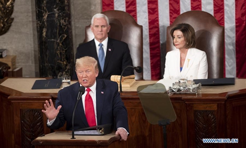 US President Donald Trump delivers his State of the Union address to a joint session of Congress on Capitol Hill in Washington D.C. on Tuesday. Photo: Xinhua
