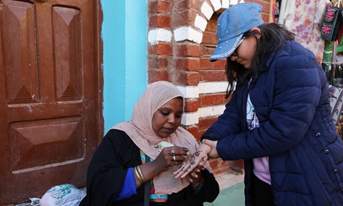 "It's so beautiful. I chose the Key of Life tattoo. I believe this henna art is attractive for both local and foreign tourists," the Egyptian young woman told Xinhua after getting her tattoo done.