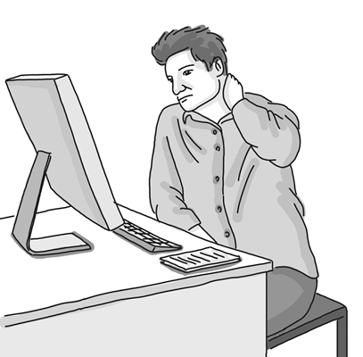 A: Probably becuase the height of the table and chair at my home isn't suitable. The screen of my labtop is also lower than my tabletop computer screen at work. I need to move your neck around more.
