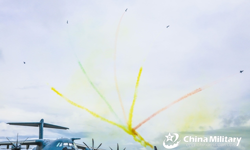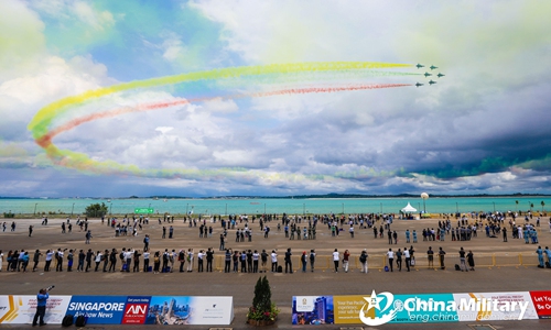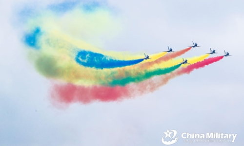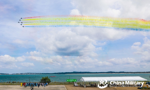 J-10 fighter jets attached to the PLA Air Force's Bayi Aerobatics Team perform aerobatic stunts during the six-day Singapore Airshow at the Changi Exhibition Centre from February 11 to 16, 2020. The flying displays this time are mainly carried out by the aerobatics teams from China, Singapore and the US. The Chinese PLA Bayi Aerobatics Team brought a visual feast to the on-site audience with sophisticated stunts and superb skills. (eng.chinamil.com.cn/Photo by Zhu Jianghai)