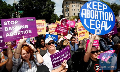 People protest during a rally calling for abortion rights outside the US Supreme Court in Washington DC, the United States, on May 21, 2019. Photo: Xinhua/Ting Shen