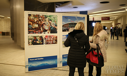 A Chinese NGO held a photo exhibition on Xinjiang at the UN Office in Geneva on Mon. More than 100 pictures and videos depicting a "beautiful, open, confident and richly-endowed Xinjiang that enjoys stable development, solidarity and harmony" were displayed for the visitors. Photo: Fan Lingzhi/GT