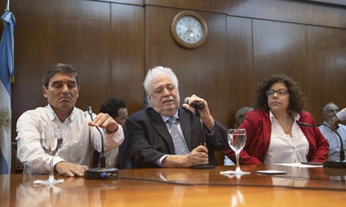 Argentinean Health Minister Gines Gonzalez Garcia (C) attends a press conference in Buenos Aires, Argentina, on March 3, 2020. Argentinean authorities on Tuesday confirmed the country's first case of the new coronavirus (COVID-19). (Photo by Martin Zabala/Xinhua)