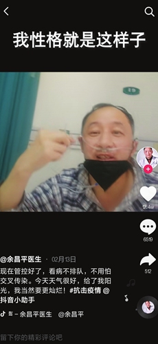 Yu narrated his diagnosis process and the treatment he received to viewers in the videos, expecting more people would have a clear and scientific understanding about the disease and not be panick over the virus by taking good preventive measures.