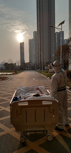 "How do you like the sunset?" Liu Kai, 27, a doctor from the Shanghai Zhongshan Hospital fighting on the frontline against the COVID-19 epidemic in Wuhan, asked an 87-year-old COVID-19 patient while escorting the elderly man back to the inpatient ward from a CT scan on Thursday afternoon.