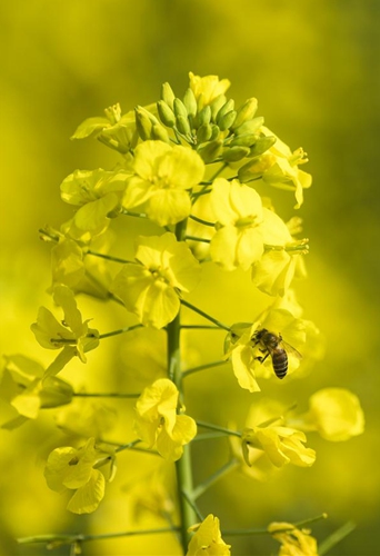 A bee sucks nectar from cole flowers at Guangyang Isle of Nan'an District, southwest China's Chongqing, March 6, 2020. Photo:Xinhua