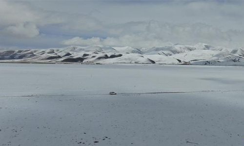 Aerial photo taken on March 6, 2020 shows a vehicle of China Telecom's local branch heading to a village in Damxung County, southwest China's Tibet Autonomous Region. China Telecom's Tibet branch organize personnel to install and debug network lines in remote pastoral areas in northern Tibet to guarantee online classes for local students amid the outbreak of the novel coronavirus disease (COVID-19). (Xinhua/Jigme Dorje)