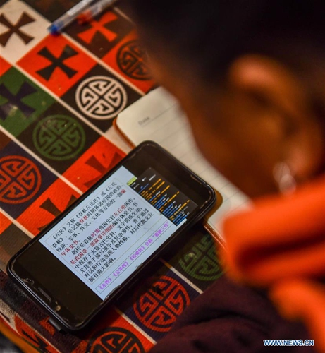 Students take an online class at home in a village in Damxung County, southwest China's Tibet Autonomous Region, March 6, 2020. China Telecom's Tibet branch organize personnel to install and debug network lines in remote pastoral areas in northern Tibet to guarantee online classes for local students amid the outbreak of the novel coronavirus disease (COVID-19). (Xinhua/Purbu Zhaxi)